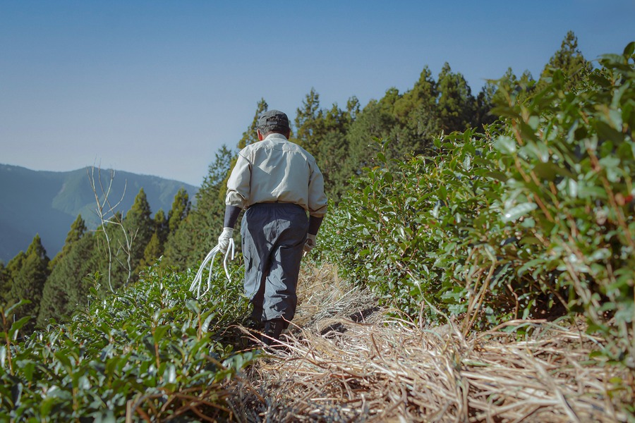 この地では、700年以上続く茶栽培「茶草場農法」が今も受け継がれています。秋冬に茶園周辺の「茶草場」から野草を刈り茶園の畝間に敷き詰める農法で、天然堆肥として土壌が豊かになり、茶葉がゆっくりと滋味を蓄え高品質な茶の生産を可能にしています。
